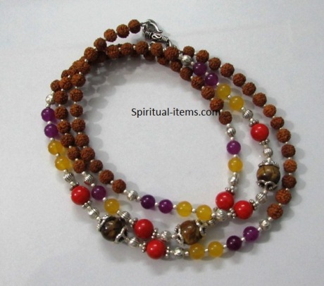 Rudraksha Coral Tigers Eye Amethyst And Coral Mala quantity