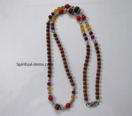 Rudraksha Coral Amethyest Combination Mala